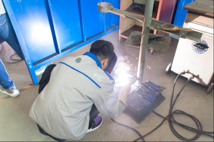 郭老師一直注重實踐操作,所以從講臺來到工作臺,拿起焊槍,便在同學們崇拜的目光中在焊出一條條平直的焊縫線,使同學們在操作時更能掌握焊接手法。