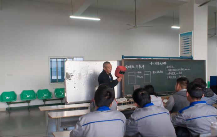 郭老師每天早上都要召開晨會,強調焊接工作中的安全問題,提醒同學們防護裝備的穿戴與安全操作的原則。
