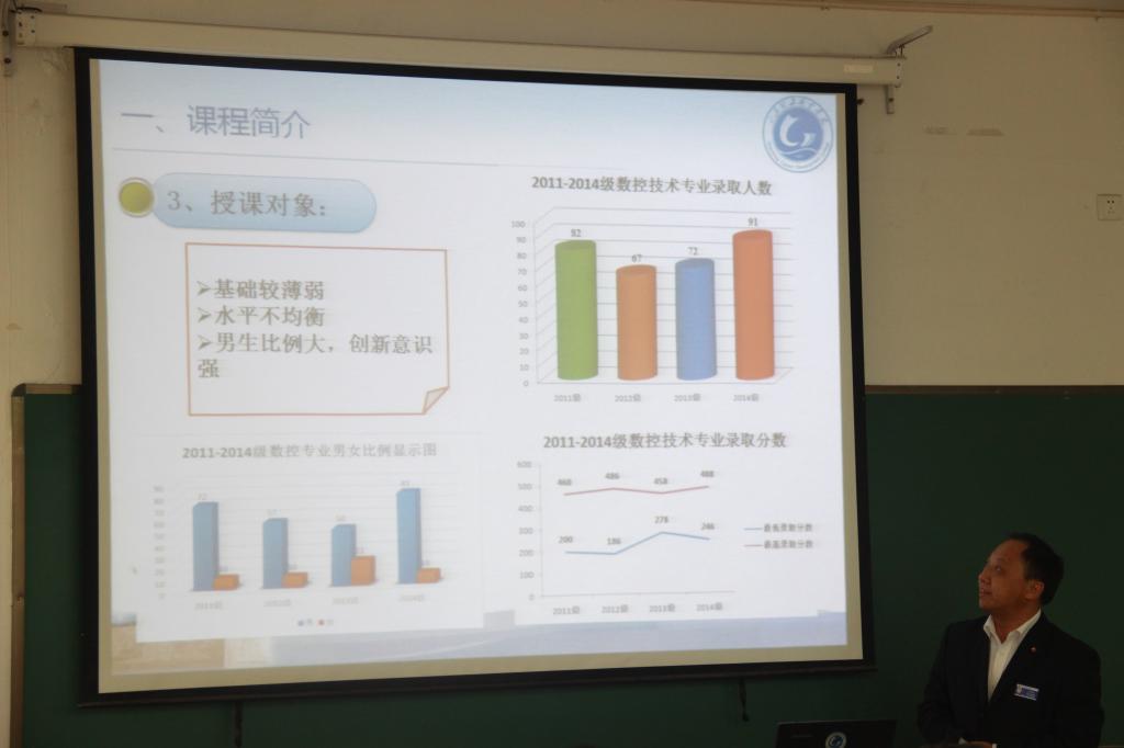 研討會上,馮建雨、萬銀生、李沖、郝傳海等老師分別就《機械設計基礎》、《機械制造技術》、《數(shù)控機床與編程》、《機械工藝與裝備》等課程,從課程性質、教學目標、課程改革思路、兩次課設計、考核方法及課改感受等方面向各位專家、評議組人員進行了課程整體教學設計匯報與演示。