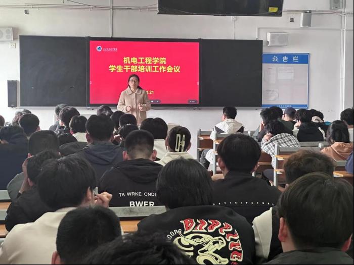 3月21日下午,機(jī)電工程學(xué)院在6529多媒體教室舉行了學(xué)團(tuán)干部培訓(xùn)及學(xué)風(fēng)建設(shè)工作會(huì)議。機(jī)電工程學(xué)院學(xué)生科(團(tuán)總支)負(fù)責(zé)人孔丹老師為各班班長(zhǎng)、團(tuán)支書(shū)以及自律委員會(huì)學(xué)生干部、團(tuán)干部圍繞學(xué)團(tuán)干部學(xué)風(fēng)建設(shè)、團(tuán)干部業(yè)務(wù)培訓(xùn)及如何建立良好的班風(fēng)、學(xué)風(fēng)等內(nèi)容展開(kāi)了富有指導(dǎo)意義的培訓(xùn),鼓勵(lì)同學(xué)們?cè)谛聦W(xué)期樹(shù)立新目標(biāo),踐初心擔(dān)負(fù)起學(xué)校高質(zhì)量發(fā)展使命。