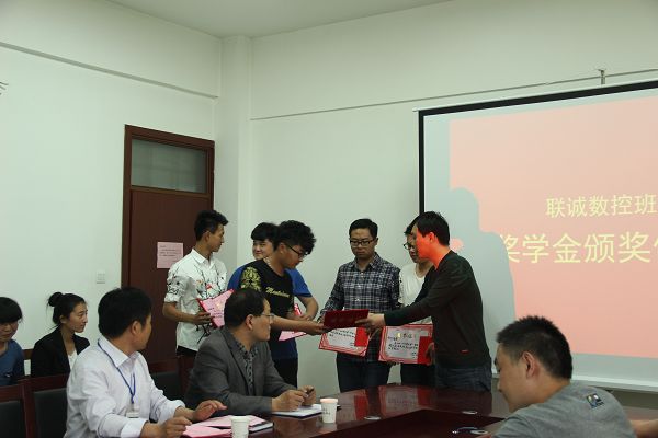 2015年5月5日下午2:30,“聯(lián)誠數(shù)控班”獎學(xué)金頒獎儀式在機電工程學(xué)院6315會議室舉行,山東聯(lián)誠集團副總經(jīng)理蔣磊,人力資源部部長韓慶成;機電工程學(xué)院黨總支書記馬成玉,副院長侯玉葉,聯(lián)誠數(shù)控班班主任王金新出席了頒獎儀式,參加本次頒獎儀式的還有聯(lián)誠數(shù)控班全體學(xué)生。會議由馬成玉書記主持。