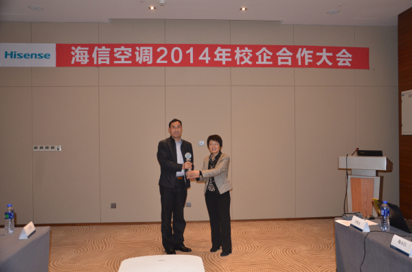 海信空調(diào)王志青總經(jīng)理授予我院“2014核心合作院校”獎(jiǎng)杯