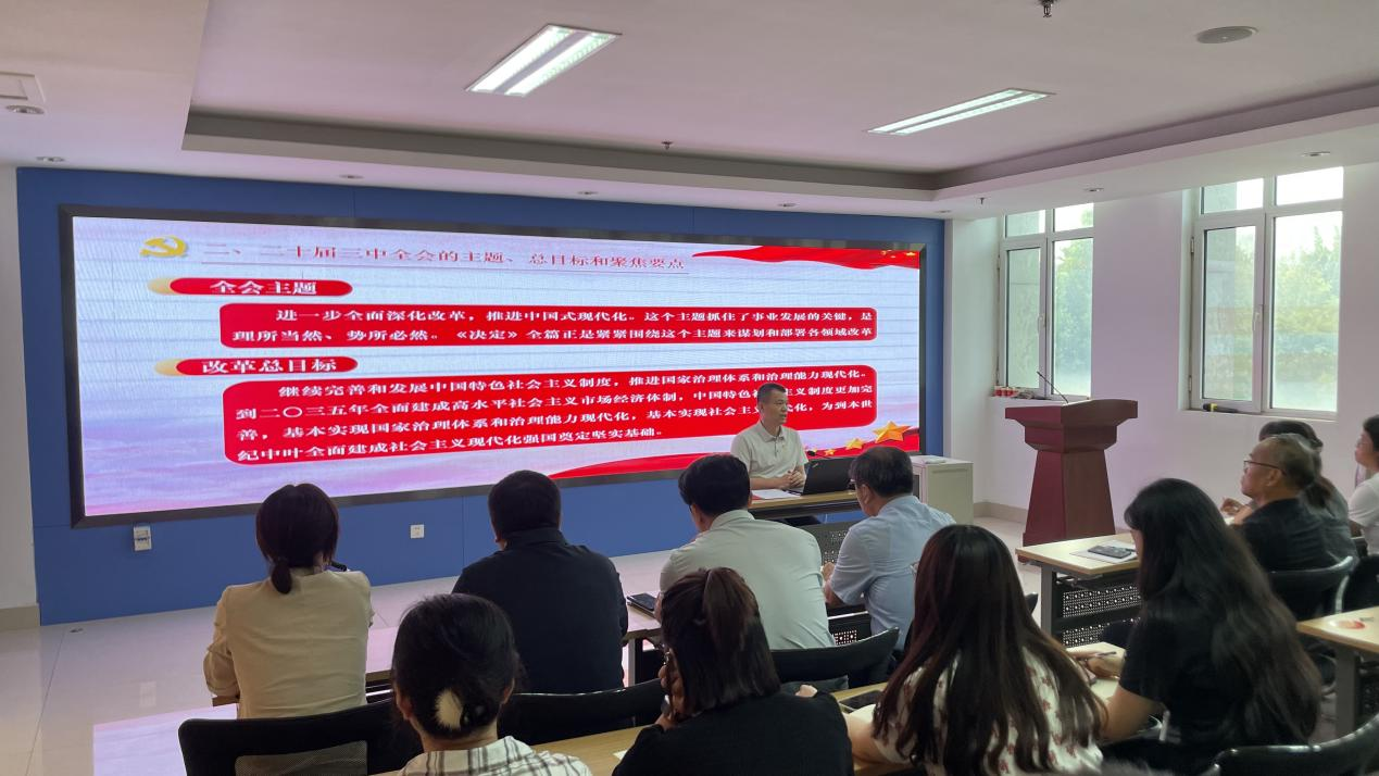張隆海校長緊緊圍繞全面了解黨的二十屆三中全會的會議概述、深入學習領(lǐng)會習近平總書記在黨的二十屆三中全會上的重要講話精神、全面準確理解《決定》提出的進一步全面深化改革重大舉措、進一步培養(yǎng)創(chuàng)新人才推動學校內(nèi)涵式發(fā)展等四個方面,結(jié)合學校實際及具體事例,對黨的二十屆三中全會精神進行了系統(tǒng)解讀和深入闡釋,對各黨支部深入貫徹落實全會精神,完善立德樹人機制,全面加強內(nèi)涵建設(shè)等方面提出了明確的目標要求。