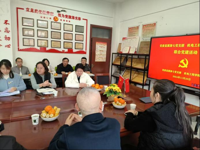 為進(jìn)一步強(qiáng)化基層黨組織之間的交流與合作,共同探索黨建工作新思路、新方法,提升基層黨組織的凝聚力和戰(zhàn)斗力,促進(jìn)雙方在理論學(xué)習(xí)、業(yè)務(wù)工作、志愿服務(wù)等方面的深度合作,共同推動(dòng)黨建工作再上新臺(tái)階,2024年11月20日下午機(jī)電工程學(xué)院黨總支與直屬第七黨支部舉行聯(lián)合黨建活動(dòng)。直屬第七黨支部和機(jī)電工程學(xué)院黨總支全體黨員教師參加了此次活動(dòng)。