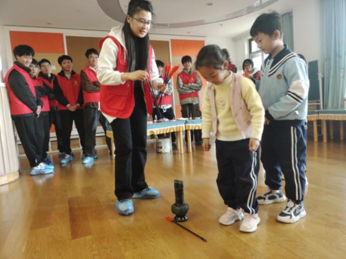更有趣的是投壺游戲環(huán)節(jié),孩子們表現(xiàn)得非常出色,一個(gè)個(gè)都像是小小的神箭手,手中的箭精準(zhǔn)地投入壺中。他們的臉上洋溢著自豪和喜悅,現(xiàn)場(chǎng)氣氛熱鬧非凡。這不僅是一場(chǎng)游戲,更是對(duì)孩子們耐心和專注力的鍛煉。