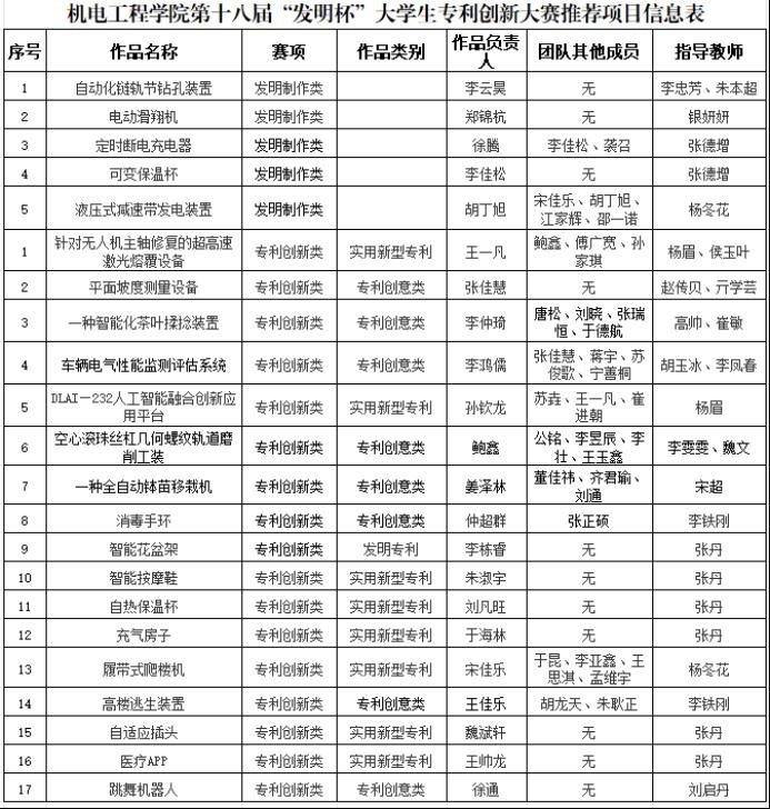 為進(jìn)一步提高師生的知識產(chǎn)權(quán)意識,提升大學(xué)生創(chuàng)新能力,發(fā)現(xiàn)和培養(yǎng)一批具有創(chuàng)新思維和創(chuàng)新實(shí)踐能力的優(yōu)秀人才,機(jī)電工程學(xué)院成功舉辦第十八屆“發(fā)明杯”大學(xué)生專利創(chuàng)新大賽及第十屆山東省大學(xué)生科技創(chuàng)新大賽。