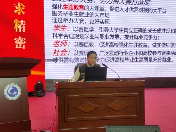 隨后,張老師憑借其豐富的任教經(jīng)驗及參加相關比賽的經(jīng)歷,從比賽內容、評分標準、提交材料等多方面全面的給同學們解析了職業(yè)規(guī)劃大賽成長賽道與就業(yè)賽道的差異。成長賽道更側重于個人在學術、技能等多方面的長期積累與深度提升,而就業(yè)賽道則更注重對當下職場需求的快速適應與實踐能力的即時應用。張老師結合大量生動且具有代表性的實際案例,深入淺出地為大家解析了大賽注意事項,受到同學們一致好評。
