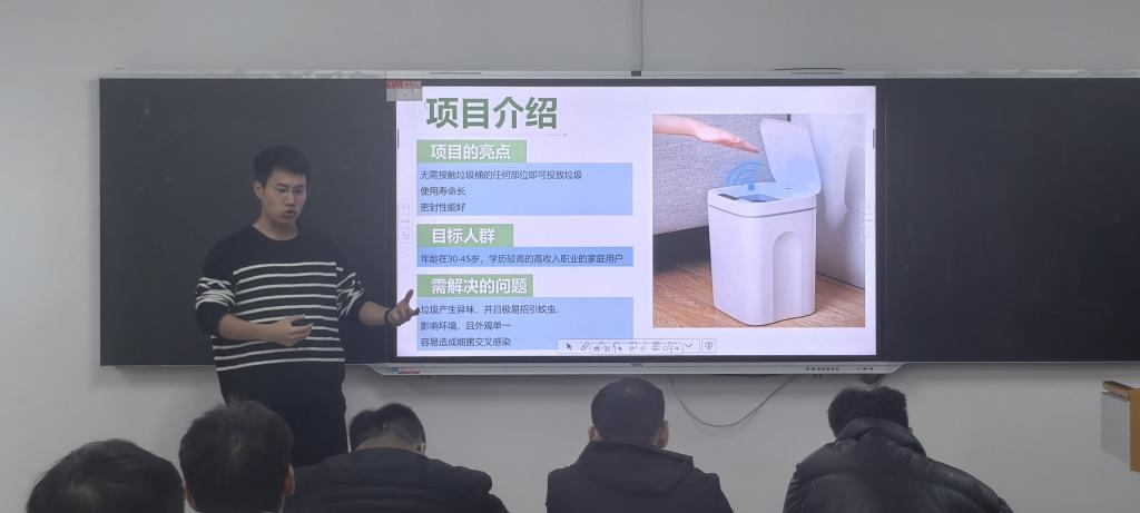 通過(guò)班級(jí)初步篩選和評(píng)議,11月19日,各班推薦的優(yōu)秀作品分校區(qū)同時(shí)進(jìn)行院級(jí)評(píng)選。評(píng)議小組從作品選題、完整性、創(chuàng)新型、可行性及經(jīng)濟(jì)效益等多個(gè)角度,對(duì)每一個(gè)參賽項(xiàng)目進(jìn)行了嚴(yán)謹(jǐn)細(xì)致的評(píng)選。匯報(bào)現(xiàn)場(chǎng)氣氛熱烈,同學(xué)們的參賽項(xiàng)目大多數(shù)能夠立足專業(yè)領(lǐng)域技術(shù)創(chuàng)新,敏銳瞄準(zhǔn)市場(chǎng)實(shí)際需求,直擊社會(huì)發(fā)展和產(chǎn)業(yè)升級(jí)中的痛點(diǎn)、難點(diǎn)。