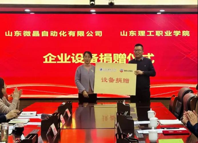 山東理工職業(yè)學院機電工程學院副院長王素梅接受山東微晶自動化總經(jīng)理王軍的企業(yè)設備募捐